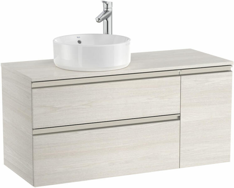 Méretek: 1100 x 460 x 537 mm 2 fiókkal és 1 ajtóval baloldali mosdóhoz Mosdót külön kell rendelni hozzá Északi hamu színben
