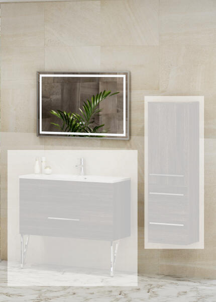 Körben integrált LED világítással | Páramentesítővel | Érintőkapcsolóval | Fém keretbe épített | Lumen: 550-570lm/m | Teljesítmény: 7,2W/m, 4000K | Méret: 90x60x3,5 cm|Fürdőszoba tükör gyártója: T-Boss