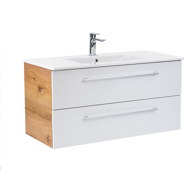 Vario Clam 100 alsó szekrény mosdóval Vario Clam 100 alsó szekrény mosdóval tölgy-fehér - stílusos és modern fürdőszobabútor A Vario Clam 100 alsó szekrény ideális választás a modern fürdőszobákba, amely ötvözi az eleganciát és a funkcionalitást. A vario bútor méretei: Szélesség: 100 cm Magasság: 52 cm Mélység: 46 cm A bútor kompakt méretei miatt kiválóan alkal