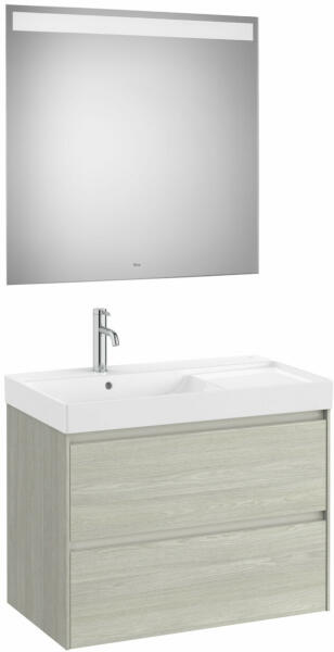 Méret: 800 x 460 x 505 mm 2 fiókos A327689000 mosdóval baloldali medencével Tükör mérete: 800 x 800 x 22 mm Beépített led világítással