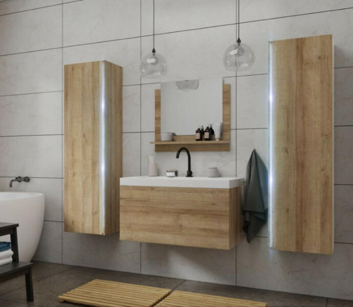 Elegáns fürdőszobaszekrény a stílus kedvelőinek. Minimalista dizájn, de erős és tartós. Tárolja összes fürdőszobai kellékét egy helyen! Szekrények ajtajának nyitási iránya választható (bal/jobb). Ergonomikus méretekkel, igényes, mutatós elem a szobában. Összeszerelést igényel, útmutató a csomagban. ANYAGA: Test és frontok - laminált tábla 16mm vastag. Kant - magas