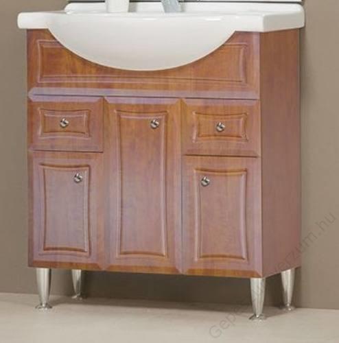 Termék jellemzői: Szél: 76 cm Mag: 85 cm Mély: 45 cm Vákuumpréselt MDF és laminált lapok Kerámia mosdótál Tükrös felső rész Fogantyú: króm gomb Láb: króm pezsgő 12 cm Választható színek: Bükk Calvados Cseresznye Dió erezett fehér Juhar Körte Magasfényű fehér Matt fehér Mokka Pezsgő fa Sonoma Szilva Venge Befoglaló méret: 75. Választható színek: bükk, cal