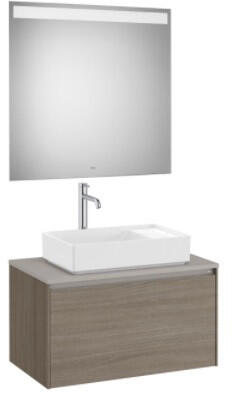 Roca Ona 1 fiókos mosdószekrény 79,4x45,7x44,3 cm és tükör LED világítással, sötét szil A851712511 Ona termékcsalád egyszerű, mint a természet. Funkcionális anélkül, hogy hidegnek tűnne, tiszta esztétikája, amely követi a természeti környezet eredendő melegét. Azoknak készült, akik élvezik a csendes tájak erejét. Alsószekrény tulajdonságai: Gar ancia: 2 év Telep