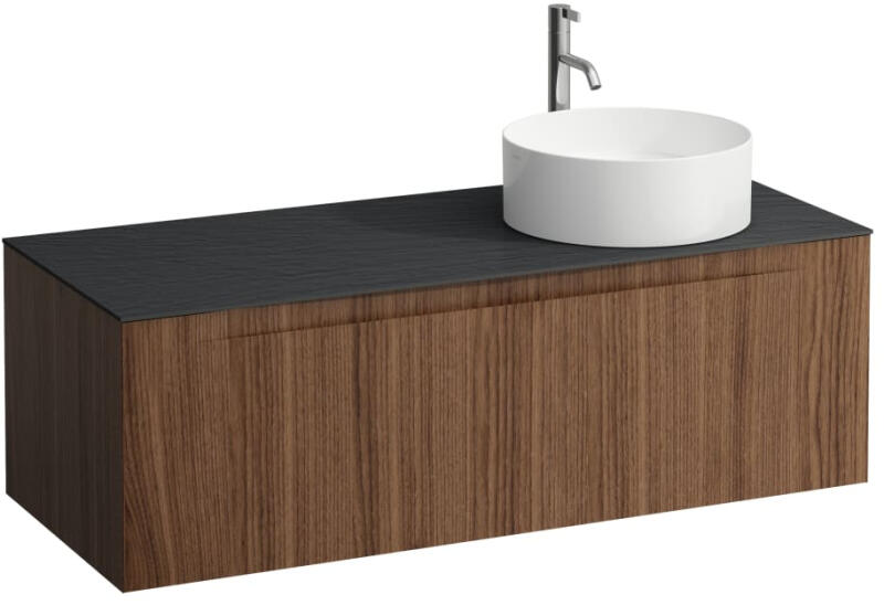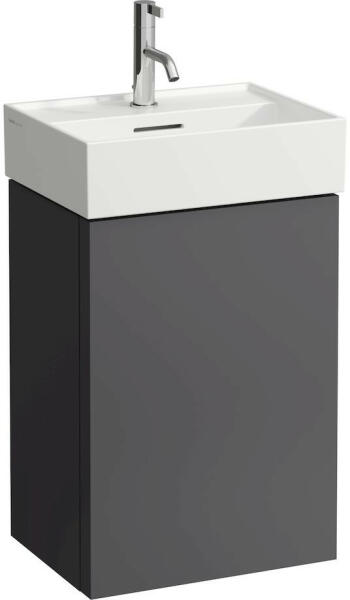 Laufen Kartell H8153300001041 mosdó variációihoz Tele pítés: falra Anyag: MDF, ABS szegély Súly: 15,5 kg Felület: nincs laminálva Szín: antracit Belső szín: fehér Méret: 43,25x33,1x60 cm Zsanér a jobb oldalon Push-Open ajtónyitás 1db fix üvegpolc a belsejében Rögzítővel A mosdó és szekrényláb nem tartozék, külön kell megrendelni.