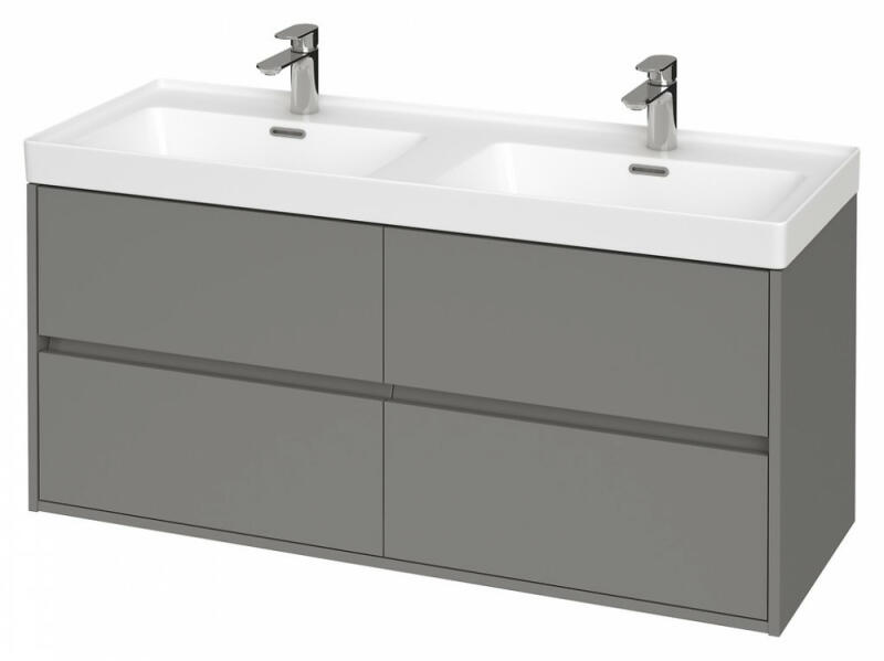 Cersanit Crea 120 alsószekrény kerámia mosdóval, matt szürke S801324A készlet tartalmaz egy CREA 120-as mosdószekrényt CREA 120-as mosdót. A CREA szekrény az időtlen, minimalista forma példája, amelyet a fogantyú nélküli előlapoknak köszönhetünk. Nedvességálló forgácslapból , matt szürke előlappal, elegáns szürke vászon belsővel. Nettó súly: 85,8 kg Bruttó súly 8