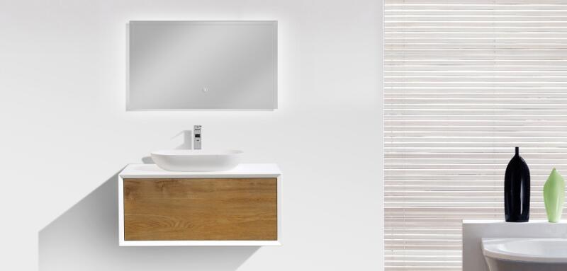 1 fiókos mosdószekrény | MDF korpusz, matt fehér felülettel | MDF korpusz, melamin fehérített tölgyfa utánzatú felülettel | Blum soft-close fiókrendszerrel | mosdókagyló és csaptelep nélkül! | Nem lapra szerelve szállítjuk. | Bútor mérete (szélesség x mélység x magasság): 90 x 55 x 40 cm | Miletos tükör LED háttérvilágítással | érintőgombos kapcsolóval |Tükör
