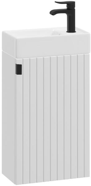 Nesso Alcee 40 esztétikus marású mosdószekrény, matt fehér 292-V-04030+1406-1 Garancia: 2 év Telepítés: falra Mosdószekrény + polc anyaga: forgácslap Szélessé g: 390 mm Mélység: 210 mm Magasság: 600 mm Kivitel: 1 ajtós, lágyan záródó zsanérokkal Ajtó nyitás: jobb vagy bal oldali szerelés Bútor belső színe: matt fehér Fogantyú nélkül Esztétikus marással ("barázd