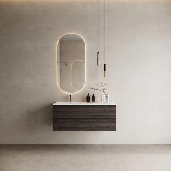 Termékjellemzők tartalmazza a következőket: mosdószekrény, alapdobozkészlet, helytakarékos szifon test alapanyaga: közepes sűrűségű farostlemez (MDF) test felületének anyaga: lakk elülső felület: üveg elülső rész felülete: fémes (szatén) elülső keret anyaga: alumínium elülső keret anyaga: por lakk (alapszín) SmoothSurface: finom és egyenletes a kellemes tapintásér