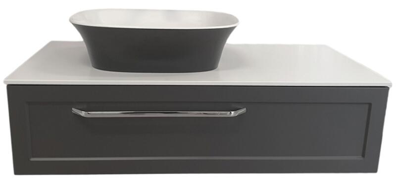 KolpaSan BLANCHE OB110 alsó szekrény, Kerrock pulttal mosdó nélkül A mosdót nem tartalmazza ! Méret (széles x mély x magas): 1100 x 525 x 292 mm Blanche alsóbútor, ráültethető öntöttmárvány mosdós szekrény Kerrock pultal. A bútor anyaga nemesített 3D fólíával bevont MDF lap. A Kerrock lapon nincs csapfurat. Vékony falú, lágyan záródó fém fiókok, krómozott fém fog