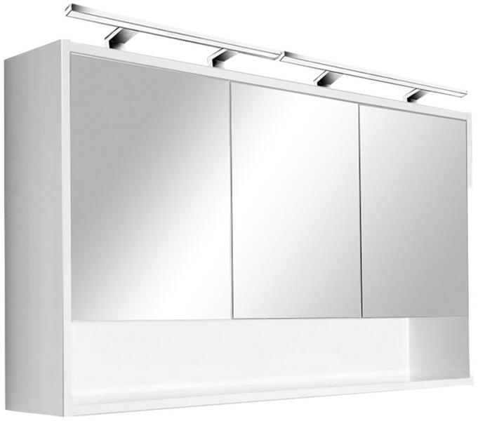 Luna 120 felső tükrös szekrény fehér Termékleírás Bút or mérete120X20X67 cmKivitel FüggesztettSzínFehérGarancia1 év A Luna 120 felső tükrös szekrény egyedivé varázsolja a fürdőszobádat! A fürdőszoba bútor tágas pakoló résszel rendelkezik ahol kényelmesen elférnek afürdőszobai pipere eszközök. A szekrényben 2 polc található. Kompakt kialakítású, méretéből