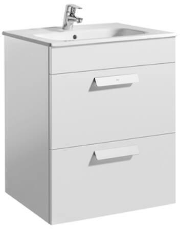 Roca Pack Debba 600 alsószekrény két fiókkal és mosdóval, fehér A855966806 Szekrény méret: 60x46x72 cm 2 darab fékezett záródású fiók Kerámia mosdó, egy csaplyukkal Fali kivitel Helytakarékos szifon Opcióként rendelhető: láb, törölköző