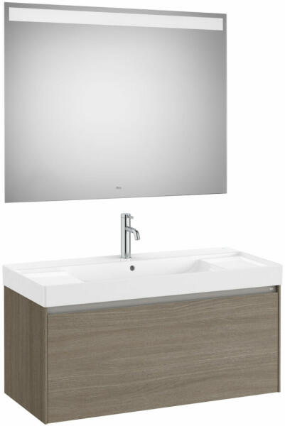 Mosdószekrény mosdóval|Méret: 1000 x 460 x 505 mm|Szín: sötét szilfa|1 fiókos|Tükör mérete: 800 x 1000 x 22 mm|Beépített led világítással|A32768A000 mosdóval együtt