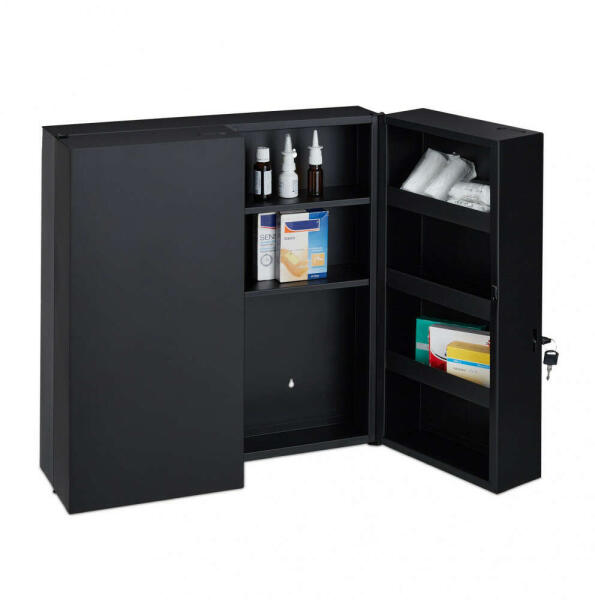 Tartsa kéznél gyógyszereit, kötszereit és elsősegély-készleteit ebben a nagy gyógyszeres szekrényben. A 2 ajtós gyógyszeres szekrény bőséges tárolóhelyet kínál 11 rekesszel. A fontos és esetenként veszélyes gyógyszereket a zárható ajtóknak köszönhetően megvédik a kíváncsi gyerekektől és az illetéktelenektől. A mellékelt rögzítőanyag segítségével egyszerű
