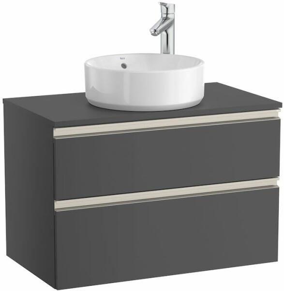 Roca The Gap 800 mm fürdőszoba bútor pultos mosdóhoz, antracit A851501153 Fali szerelés Mosdószekrény méret: 805 x 460 x 537 mm (szélesség x mélység x magasság) Két fiók Csaptelep és a mosdó nem tartozék! Opcionálisan rendelhető: láb szett, mosd