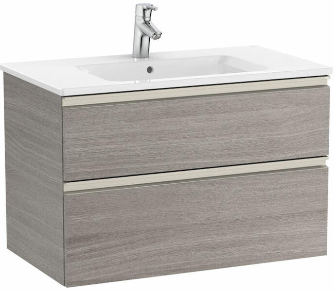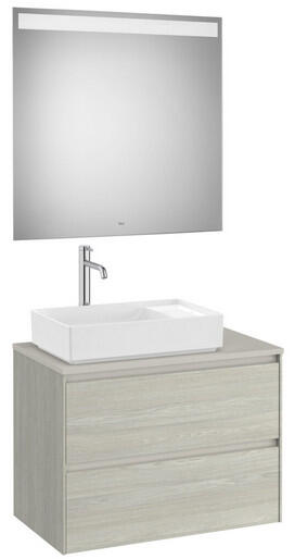 Roca Ona 2 fiókos mosdószekrény 79,4x45,7x58,3 cm és 80x80 cm-es tükör LED világítással, balos / világos tölgy A851717512 Ona termékcsalád egyszerű, mint a természet. Funkcionális anélkül, hogy hidegnek tűnne, tiszta esztétikája, amely követi a természeti környezet eredendő melegét. Azoknak készült, akik élvezik a csendes tájak erejét. Alsószekrény tulajdonságai: