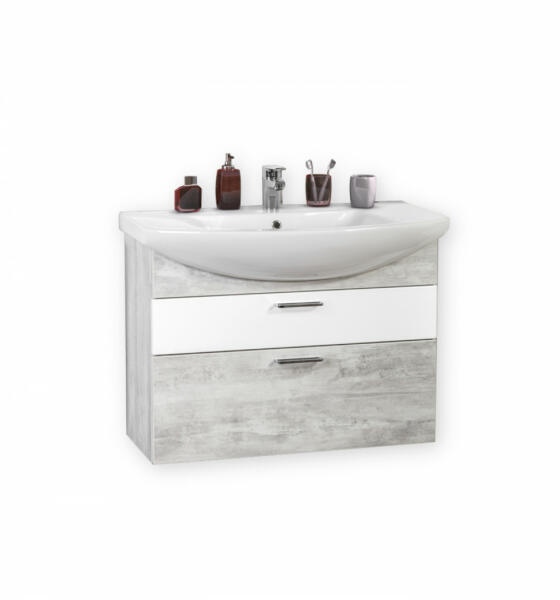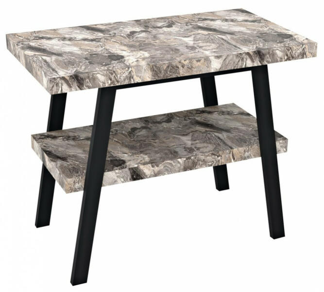 SAPHO Twiga mosdótartó asztal polccal 90x72x50 cm, matt fekete/szürke kő VC442-90-10 Garancia: 24 hónap Súly: 31,34 kg Szín: szürke Dekor: szürke kő Telepítés: álló Alapanyag: MDF/laminált/acél Víz és karcálló Szélesség: 90 cm Magasság: 72 cm Mélység: 50 cm Típus: nyitott A 80-130 cm-es méretű mosdók lenyűgöznek időtálló, szellős kialakításukkal, amely kiemeli