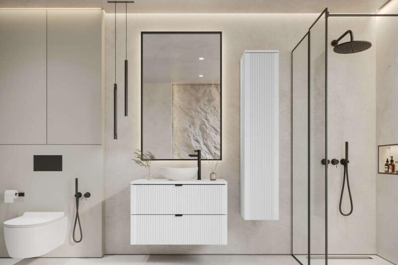 Mylife kadi 80 2 fürdőszoba bútor, matt fehér. A munkalap védve van a víz felszívódásától! ! !ELŐRENDELHETŐ!!! ELÉRHETŐ ÁPRILIS 1 TŐL!!! (házhozszállítás rendeléstől számítva 12-14 munkanap) Műszaki adatok Mosdó szekrény: - Szélesség: 80 cm - Magasság: 51,5 cm - Mélysége: 48 cm Függőleges szekrény:- Szélesség (30cm)- Magasság: (150cm)- Mélység: (30cm)- Test