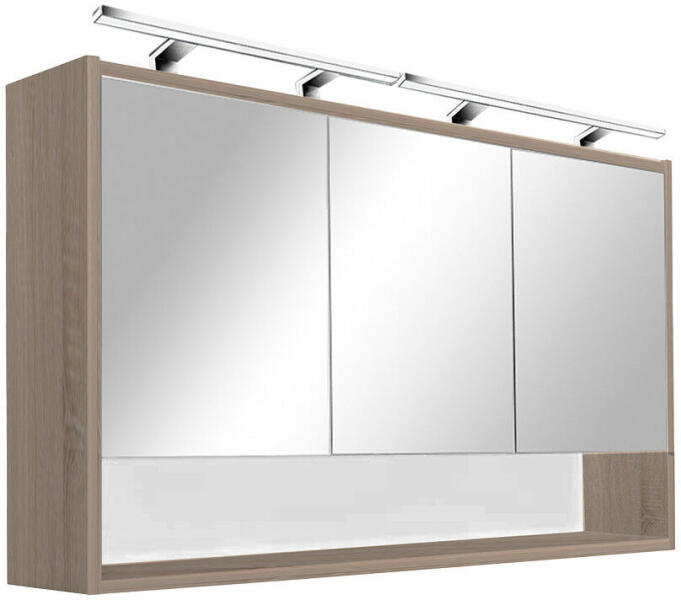 Luna 120 felső tükrös szekrény, Rauna szilTermékleírásBútor mérete120X20X67 cmKivitelFüggesztettSzínRauna szilGarancia1 évA Luna 120 felső tükrös szekrény egyedivé varázsolja a fürdőszobádat! A fürdőszoba bútor tágas pakoló résszel rendelkezik ahol kényelmesen elférnek a fürdőszobai pipere eszközök. A szekrényben 2 polc található. Kompakt kialakítású, méret