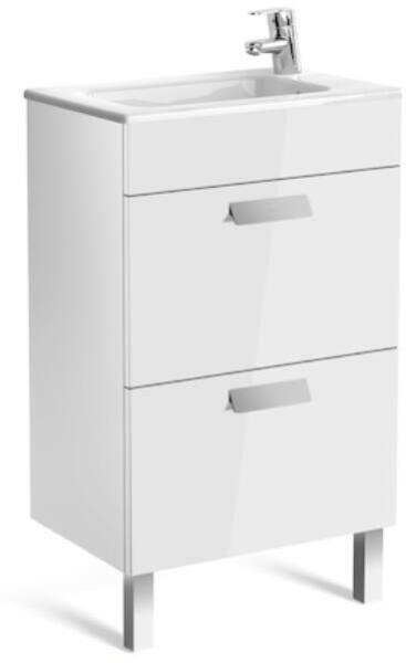 Roca Debba Unik Compact 500 alsószekrény két fiókkal és mosdóval, fehér A855904806 Szekrény méret: 50x36x72 cm 2 darab fékezett záródású fiók Kerámia mosdó 1 csaplyuk a jobb oldalon Fali kivitel Helytakarékos szifon Opcióként rendelhető: láb, tör&ou