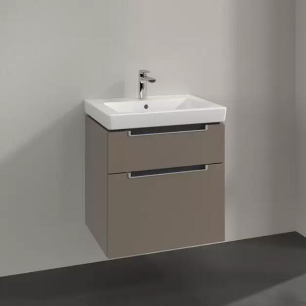 Subway 2.0 Alsószekrény 587x590x454mm Truffle Grey 1 x doboz kiegészítőkhöz L, 2 x kihúzható elem, mosdó középen, falra szerelhető, SzögletesA mosdót nem tartalmazza, azt külön kell megrendelni!