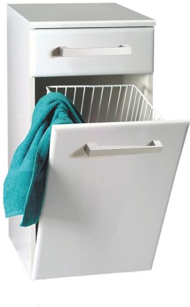 Aqualine Vega alsó szekrény, szennyestartóval, 40x78x31cm, fehér VEGA - Fürdőszobai, álló alsószekrény szennyestartóval. Modern, szögletes vonalvezetés. Jellemzői: A fürdőszoba bútor alapanyaga selyemfényű fehér, festett MDF lap Lábra vagy falra függesztve szerelhető Alsó részén 1 db fém kibillenős, rácsos szennyestartó kosár található Felső része 1 db fiókkal r