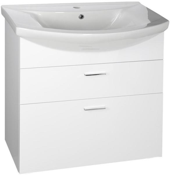 Aqualine Zoja mosdótartó szekrény, 2 fiókos, 71,5x74x34cm, fehér ZOJA - a fürdőszobabútorok új generációja!A mosdókagyló modern dizájnja harmonizál a szekrény éles széleivel, melyet alulról elegáns, krómozott fogantyúk díszitenek. A mosdószekrények falra szerelhetőek, de néhány modellt támasztólábakkal is fel lehet szerelni. A szekrények fényes-fehér és matt mali
