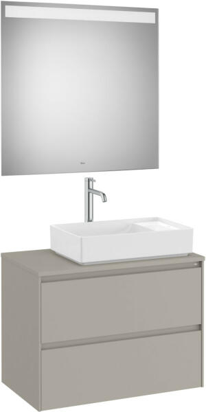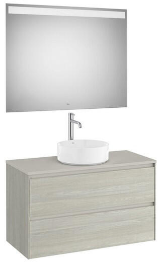 Roca Ona 2 fiókos mosdószekrény 99,4x45,7x58,3 cm és 100x80 cm-es tükör LED világítással, világos tölgy A851718512 Ona termékcsalád egyszerű, mint a természet. Funkcionális anélkül, hogy hidegnek tűnne, tiszta esztétikája, amely követi a természeti környezet eredendő melegét. Azoknak készült, akik élvezik a csendes tájak erejét. Alsószekrény tulajdonságai: Gar anc