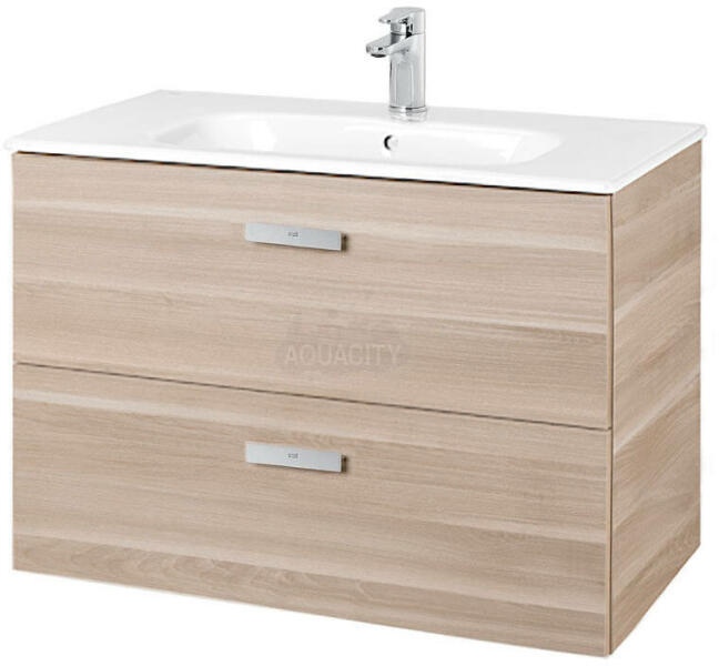 Roca Unik Victoria-N alsószekrény mosdóval 80 cm nyír A855852422 Méret: 80,5x46x56,5 cm 2 fékezett záródású fiók Kerámia mosdó, csaplyukkal túlfolyóval Opcionálisan rendelhető: bútorláb, törölközőtartó Csaptelep és leeresztő nélkül
