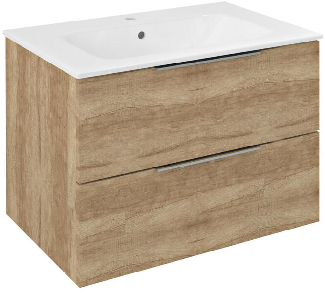 Sapho Cirasa mosdótartó szekrény 2 fiókkal 69,8x52x46 cm, alabama tölgy CR701-2222 Garancia: 24 hónap Jótállás: 2 év Súly: 18 kg Telepítés: fali Anyag: MDF/laminált 2 fiókkal Kivitel: halk lágy záródás Méret: 69,8x52x46 cm Szélesség: 698 mm Mélység: 460 mm Magasság: 520 mm Krómozott fogantyúkkal Szín: alabama tölgy A mosdó nem tartozék, külön rendelhető. Alapkivit