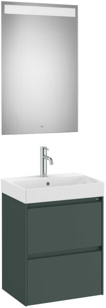 Komplett bútor|Mosdószekrény:|Méret: 500 x 360 x 645 mm|Szín: matt zöld|2 fiókos|A32768E000 mosdóval|Tükör mérete: 800 x 500 x 22 mm|Beépített led világítással