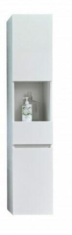 Intenso fürdőszobai falra telepíthető magasított állószekrény magasfényű fehér felülettel. Az ajtólap mellett az oldalak is magasfényű felülettel rendelkeznek. 16 mm vastag front bútorlap, és korpusz. Az élek ABS élfóliával vannak lezárva, ami egyszerre esztétikus és véd a beázás ellen. Matt fekete hosszított fém fogantyúval. Méretek: Szélesség: 30 cm Magasság: 1