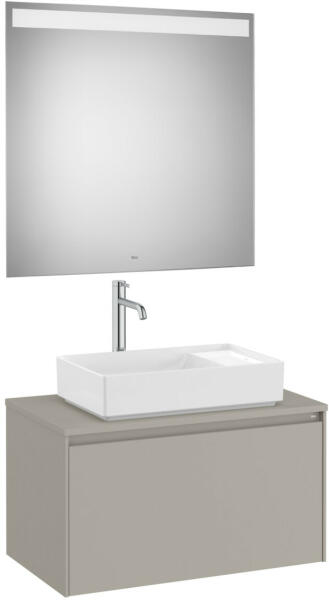 Mosdószekrény tükörrel|Méret: 794 x 457 x 443 mm|Szín: matt szürke|1 fiókos|Tükör mérete: 800 x 800 x 22 mm|Beépített led világítással|Az az ár a mosdót nem tartalmazza, külön szükséges megrendelni!