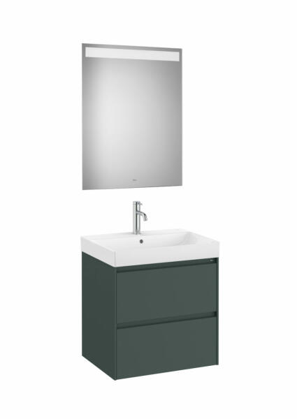 Roca Ona Pack 2 fiókos alsószekrény mosdóval 60x46 tükör LED világítással Matt Zöld A851704513 Alsószekrény tulajdonságai: Gar ancia: 2 év Telepítés: falra Magasság: 565 mm Magasság mosdóval: 645 mm Szélesség: 585 mm Szélesség mosdóval: 600 mm Mélység: 460 mm Fiókok száma: 2 Teljesen kihúzható, lágyan záródó fiók Beépített fogantyúkkal Szín: matt zöld Mosdó