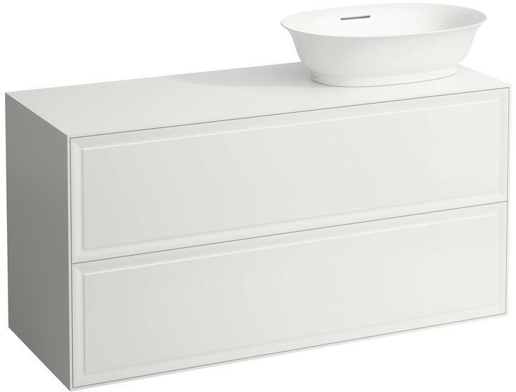 Laufen Alsószekrény 118 × 45 × 60 cm, 2 fiók, kivágással a jobb oldalon, illeszthető a 812852, 812853 mosdótálhoz Kollekció: THE NEW CLASSIC Opció: THE NEW CLASSIC Hossz: 1175 mm Szélesség: 455 mm Magasság: 600 mm