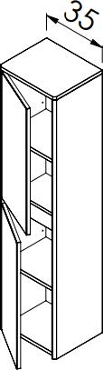 Kiegészítő szekrény|Fali rögzítéssel|2 ajtós balos vagy jobbos nyitással|Korpusz és front: Vákuumpréselt MDF front és oldalak, laminált lapok|Csillapított záródású pántok|Méret: 35x140x30|Mérsékelten vízálló|Szálcsiszolt alu bemart fogantyúval |Összeszerelve szállítjuk|A kiválasztott színt a megjegyzésben kell feltüntetni|Színválaszték: magasfényű fehér, sz