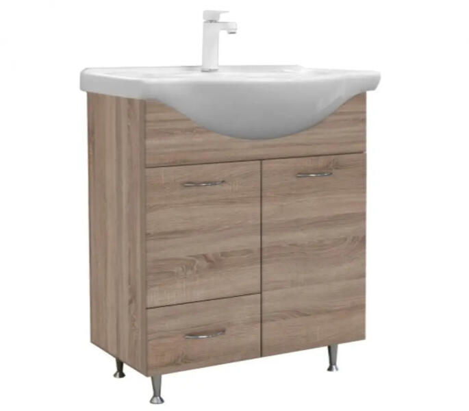 Vanessa 75 alsó szekrény mosdóval Termékleírás A Vanessa 75 alsó szekrény harmóniát teremt az Ön fürdőszobájában is ! A fürdőszoba bútor kevés helyet foglal viszont tágas szekrénnyel rendelkezik ahol kényelmesen elférnek afürdőszobai pipere eszközök. Kevés helyigénye miatt kisebb fürdőszobák berendezésére is alkalmas, például panel lakásokban. A termék magas m