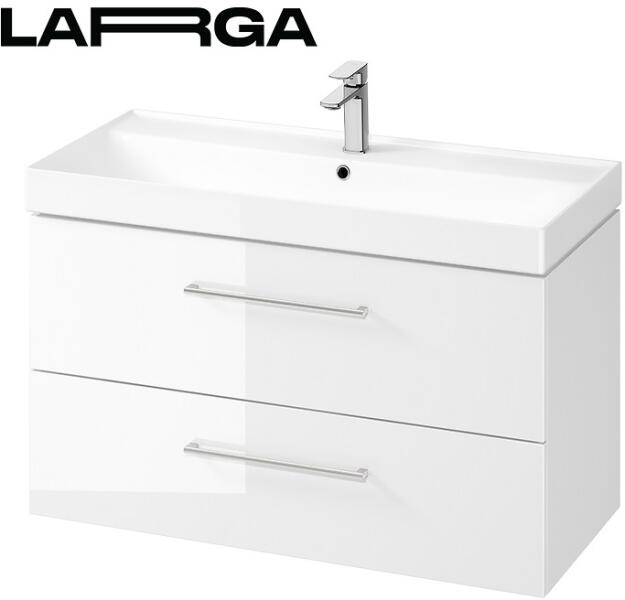 Cersanit Larga, fürdőszoba szekrény mosdóval 100x45x65 cm, fehér fényes, S801-437 A szekrény kerámia mosogatóval együtt eladó. A leeresztő készletet és az akkumulátort nem tartalmazza a csomag. Műszaki adatok: Gyártó: Cersanit Sorozat: Larga Szekrény típusa: függő mosogató szekrény fiókokkal és kerámia mosogatóval Szélesség: 994 mm Mélység: 444 mm Magasság: 652 mm