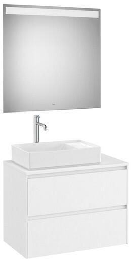Roca Ona 2 fiókos mosdószekrény 79,4x45,7x58,3 cm és 80x80 cm-es tükör LED világítással, matt fehér A851717509 Ona termékcsalád egyszerű, mint a természet. Funkcionális anélkül, hogy hidegnek tűnne, tiszta esztétikája, amely követi a természeti környezet eredendő melegét. Azoknak készült, akik élvezik a csendes tájak erejét. Alsószekrény tulajdonságai: Gar ancia: 2