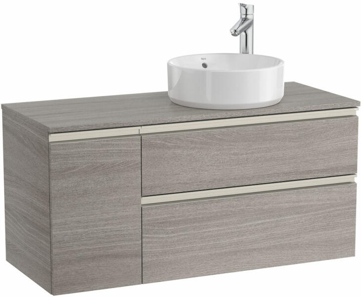 Méretek: 1100 x 460 x 537 mm 2 fiókkal és 1 ajtóval jobboldali mosdóhoz Mosdót külön kell rendelni hozzá Sötét tölgy színben