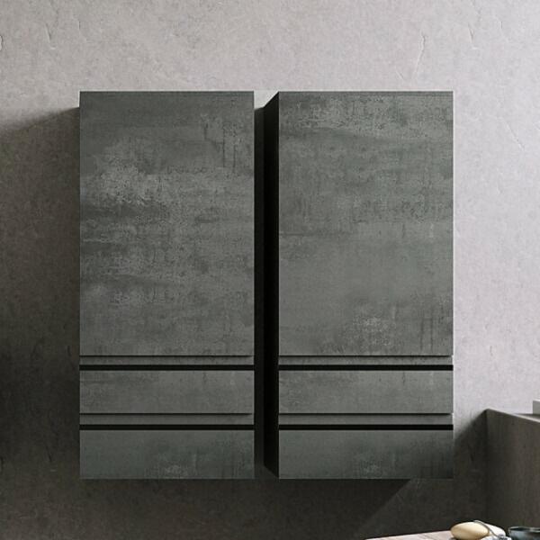 2022-es újdonság, divatos színekben, széles méretválasztékban. Kerrock fedlappal és mosdómedencékkel rendelkező, fürdőszoba bútor. Rejtett bemart fogantyúkkal tervezték, fiókrendezője széria tartozék, mosdó medencéje két féle formában választható. Újdonság továbbá a dupla kerek tükör, egy szenzoros kapcsolóval. 750x1460x320 cm Sötét betonszürke színben! (dark