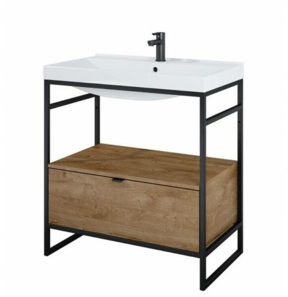 AREZZO design - NEBO Gyönyörű, letisztult, indusztriális stílusú, szabadonálló mosdószerkrény. Válassz a légies polcos vagy praktikus teljesen kihúzható fiókos verzió között. Elérhető méretek:60 cm, 80 cm, 100 cm, 120 cm. Fontos információ: A csomag nem tartalmaz csaptelepet, szifont és lefolyót, de kínálatunkban elérhető. Fürdőszobaszekrény mosdótál nélkül.