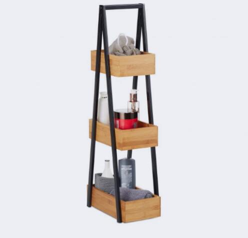 HAKAN Fürdőszobai Polc Teljes Mérete: 81 x 18 x 30 cm (Ma x Szé x Mé) Felső polc belső mérete: 6,5 x 14 x 20 cm (Ma x Szé x Mé) Középső polc belső mérete: 6,5 x 14 x 24 cm (Ma x Szé x Mé) Alsó polc belső mérete: 6,5 x 14 x 28 cm (Ma x Szé x Mé) Polcok közötti távolság: 19,5 cm Terhelhetősége: Polconként: max. 5 kg Anyaga: Bambusz, Fém Súly: kb. 2,6 kg
