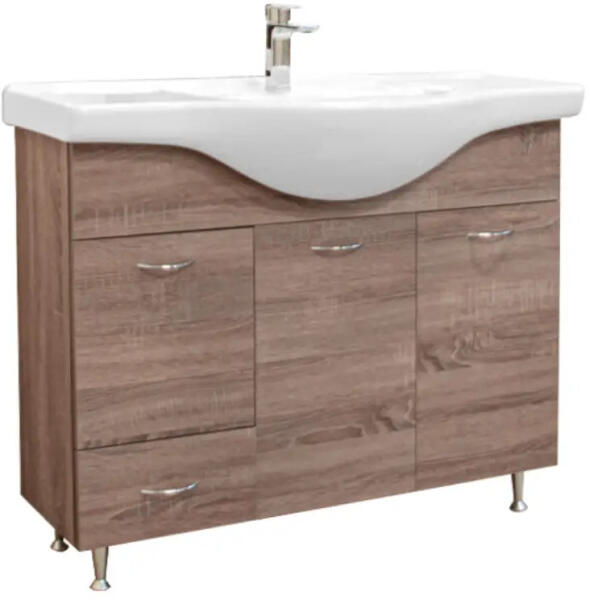 Termékjellemzők tartalmazza a következőket: mosdószekrény, helytakarékos szifon test alapanyaga: közepes sűrűségű farostlemez (MDF) test felületének anyaga: hőfólia elülső felület: közepes sűrűségű farostlemez (MDF) elülső rész felülete: hőfólia MoistureProof: tartós és ellenálló anyag fogantyúrúddal n yílás típusa: ajtó fogantyúk anyaga: alumínium foganty
