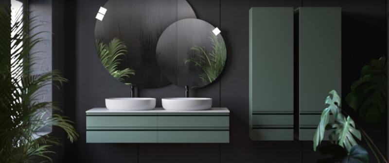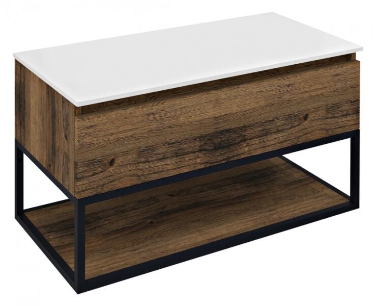 KolpaSan ALEXIS alsó szekrény, több méretben Kerrock anyagból készült pulttal, választható mosdóval. 2022-es újdonság, divatos színekben, széles méretválasztékban. Kerrock fedlappal rendelkező, fürdőszoba bútor. Rejtett bemart fogantyúkkal tervezték, fiókrendezője széria tartozék. Front: MDF nemesített 3D fóliával. Korpusz: nemesített forgácslap Fogantyúk: fekete f