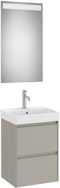 Mosdószekrény mosdóval|Mosdószekrény:|Méret: 450 x 360 x 645 mm|Szín: matt szürke|2 fiókos|A327682000 mosdóval|Tükör mérete: 800 x 450 x 22 mm|Beépített led világítással