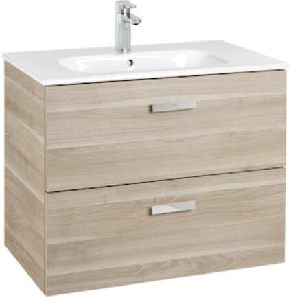 Roca Unik Victoria-N alsószekrény mosdóval 70 cm nyír A855853422 Méret: 70,5x46x56,5 cm 2 fékezett záródású fiók Kerámia mosdó, csaplyukkal túlfolyóval Opcionálisan rendelhető: bútorláb, törölközőtartó Csaptelep és leeresztő nélkül