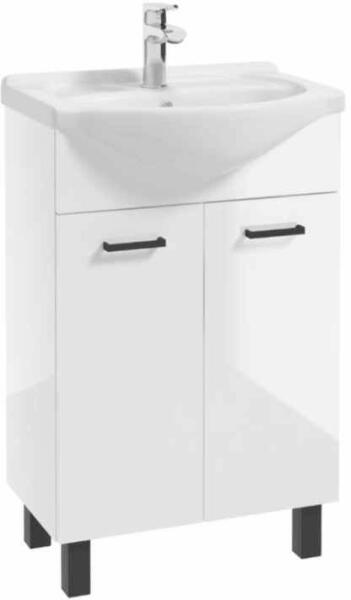 Erga Lumi, mosogató szekrény + kerámia mosogató 50x41cm, fehér fényes-fekete fogantyú, ERG-207-D-05013+1520 A szekrény leírása: Típus: álló mosdószekrény Felületkezelés: fehér fényű Szélesség [mm]: 464 Magasság [mm]: 820 Mélység [mm]: 296 Ajtók száma: 2 Test és előlap anyaga: lakkozott táblák Fogantyú anyaga: fém Fogantyúk színe: matt fekete A szekrény kiváló