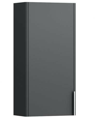 Laufen Base matt antracitszürke középmagas szekrény 35x70x18 cm balos ajtóval H4026011102661 Telepítés: fali Súly: 10,5 kg Alapanyag: MDF Felület: PVC fólia és ABS élek Szín: matt antracitszürke Méret : 35x18,5x70 cm Kivitel: egy ajtóval (zsanér a bal oldalon ) Fékezett záródással (soft-close mechanizmus) Integrált alumínium fogantyú Polcok száma: 2 db állítható magass