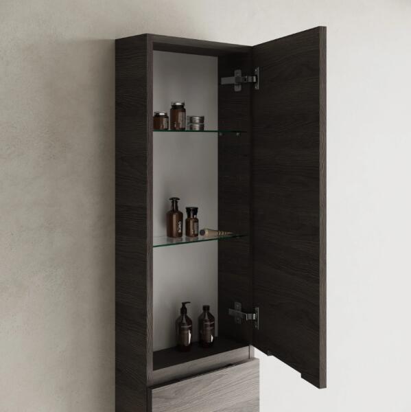 Termékjellemzők tartalmazza a következőket: mosdószekrény, alapdobozkészlet test alapanyaga: közepes sűrűségű farostlemez (MDF) test felületének anyaga: hőfólia elülső felület: közepes sűrűségű farostlemez (MDF) elülső rész felülete: hőfólia MoistureProof: tartós és ellenálló anyag fogantyúrúddal n yílás típusa: teljesen kihúzható fogantyúk anyaga: alumín