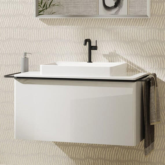 Hansgrohe Xelu Q Mosdószekrény 980/550 fiókkal, ráültetett mosdótálakhoz, matt fekete fogantyú/magasfényű fehér 54058670 iF product design award 2023: a világ legjobb formatervezéseivel büszkélkedhetnek. Nemzetközileg elismert minőségi pecsét, amelyet 1953 óta ítél oda az International Forum Design. Garancia: 5 év Telepítés: falra Alkalmazás: pultlaphoz, pultra ültetett